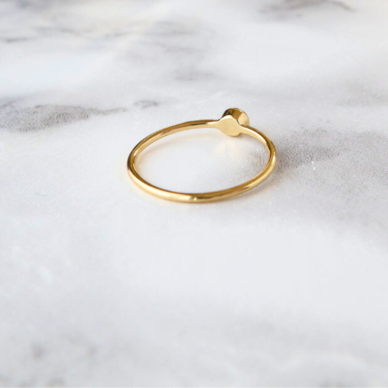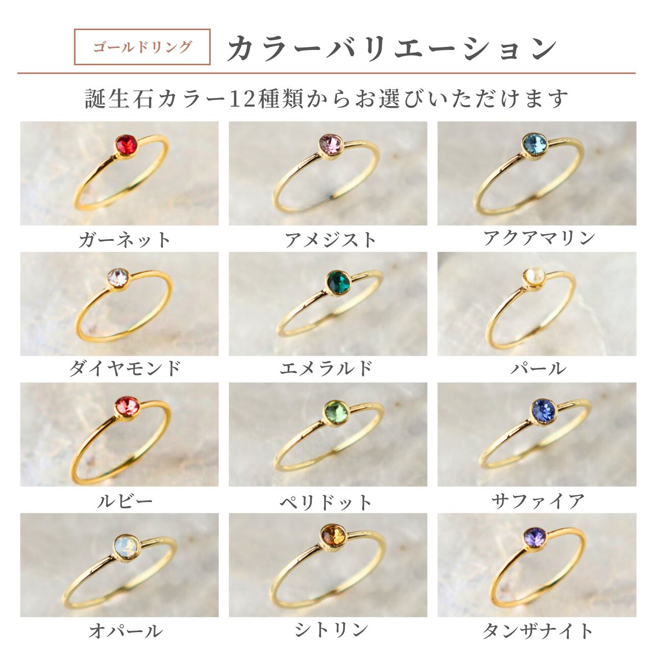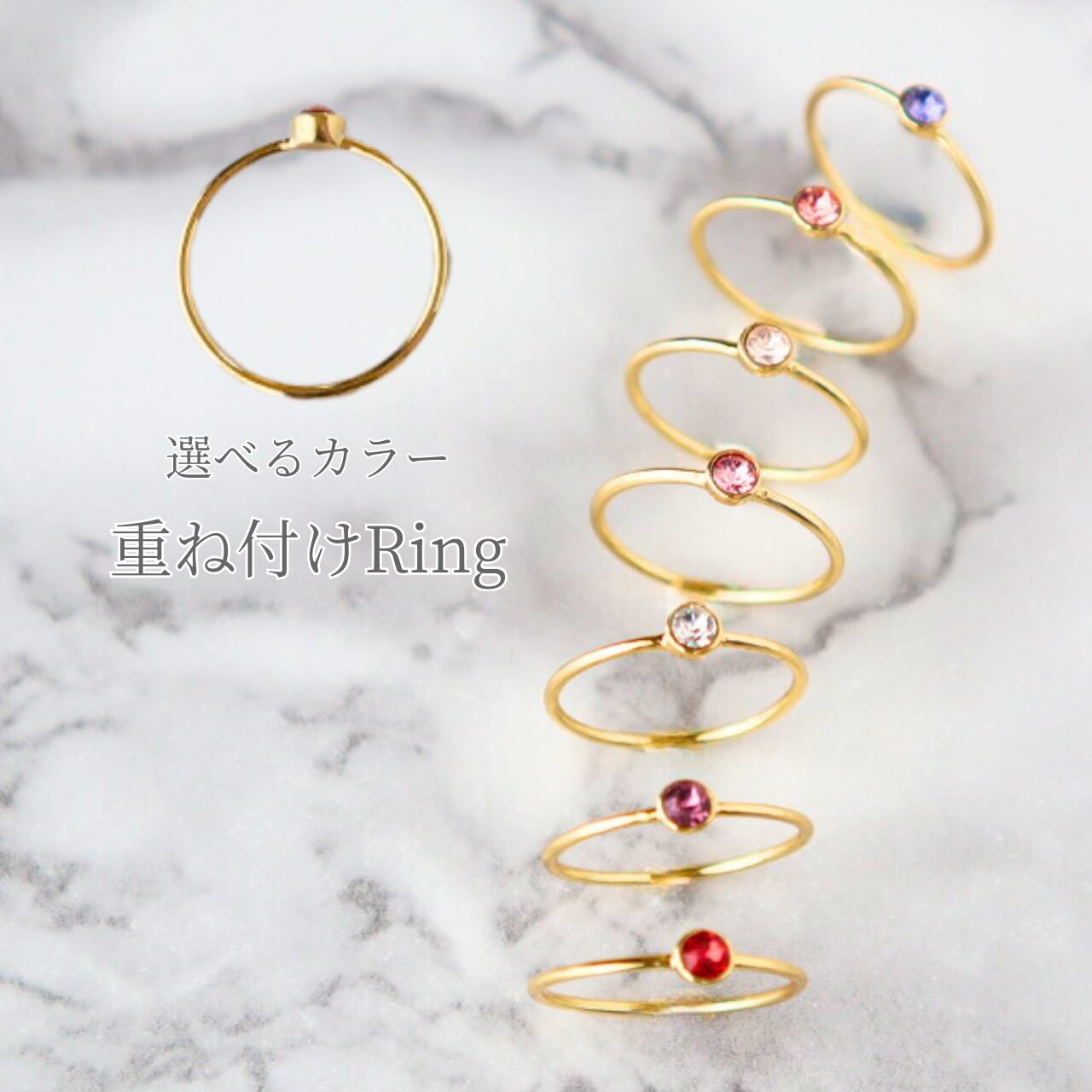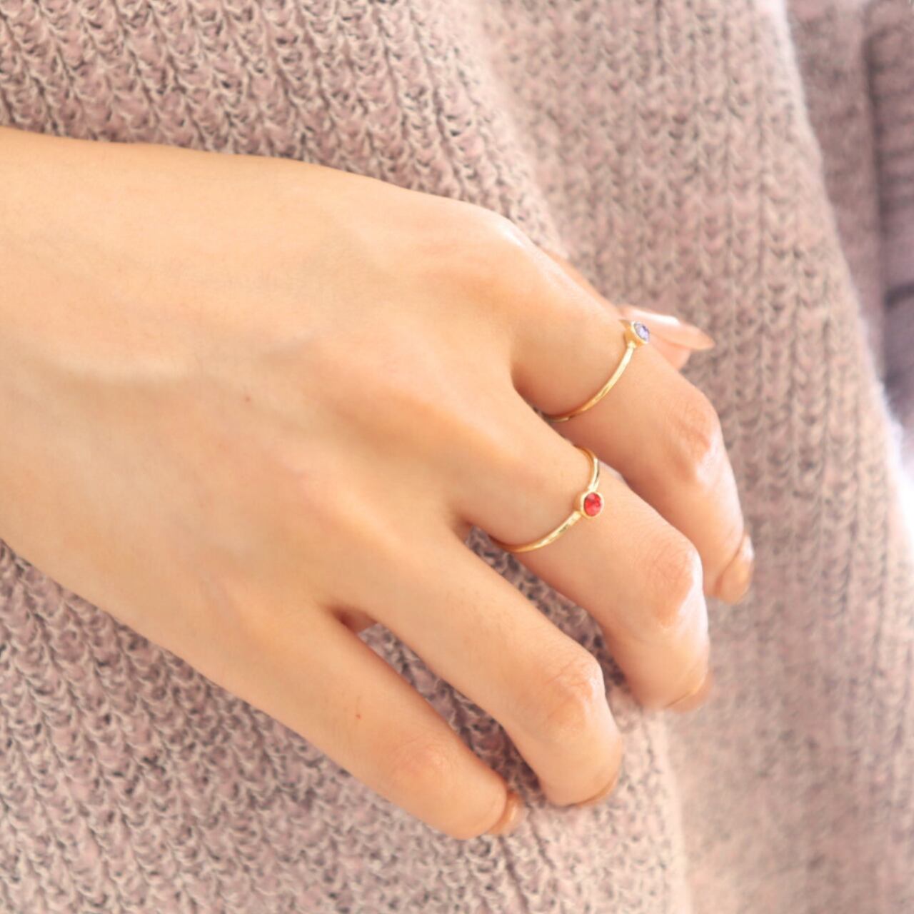 ガラスストーンと繊細で華奢なデザインが特徴のリング。